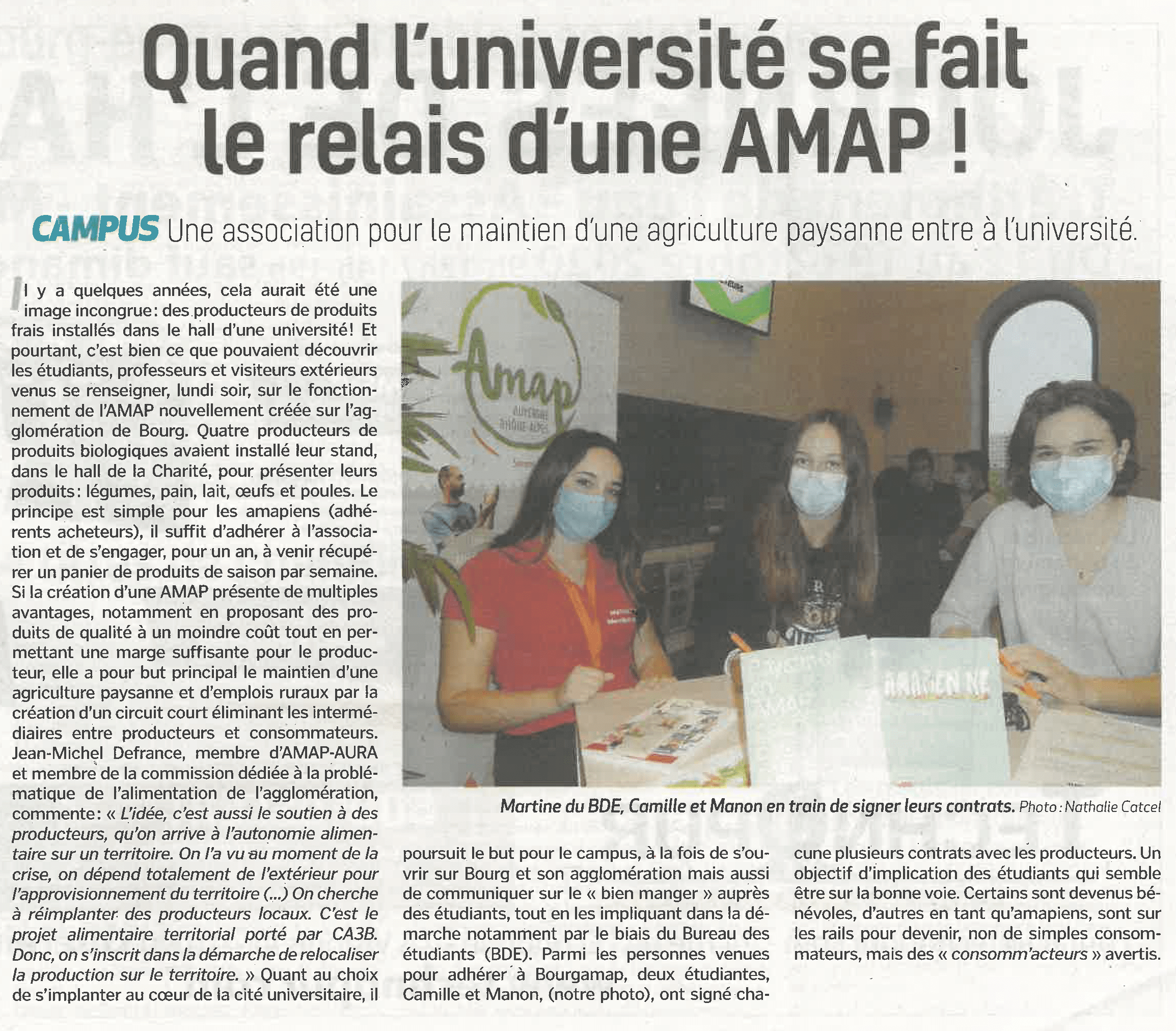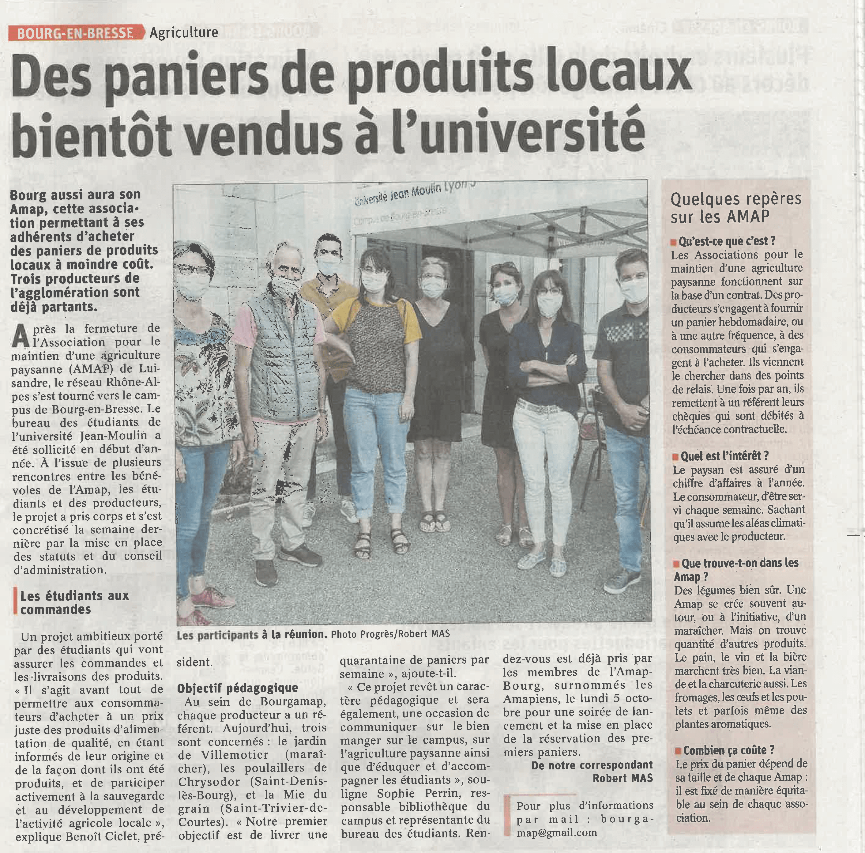 - Demander les CONTRATS (classiques ou étudiants) qui vous intéressent à l'adresse suivante : bourgamap@gmail.com et les déposer, accompagnés, de vos règlements, dans la boîte aux lettres située à l’entrée du Campus de Bourg-en-Bresse.