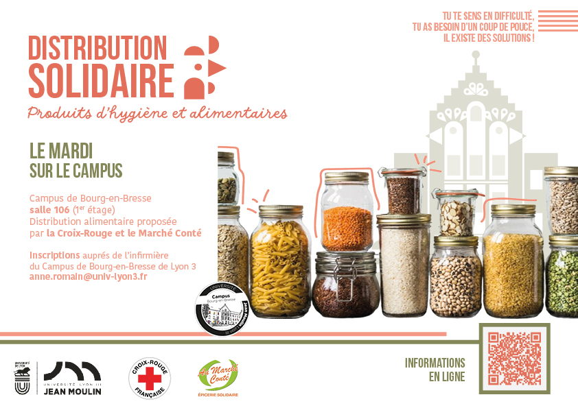 En cas de besoin spécifique viens trouver l'infirmière : anne.romain@univ-lyon3.fr - Épicerie solidaire de Bourg - Au marché Conté