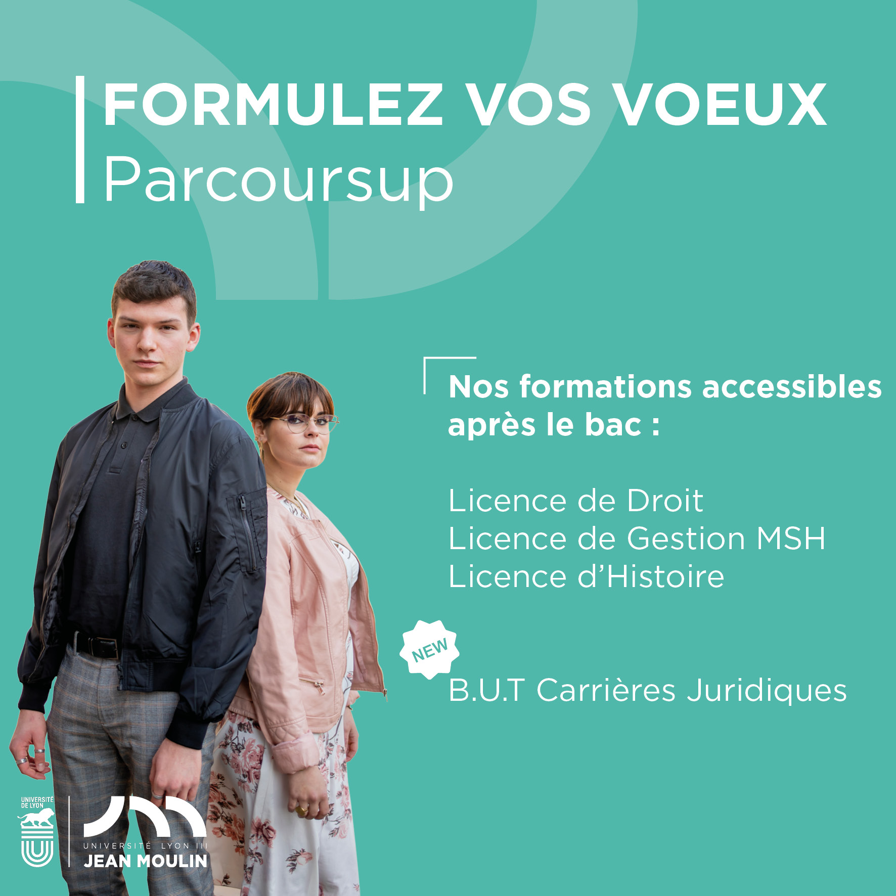 Une plateforme pour candidater à nos formations accessibles après le Bac : licences générales en Droit, Gestion et Histoire mais également au B.U.T Carrières Juridiques qui ouvrira ses portes dès la rentrée prochaine.