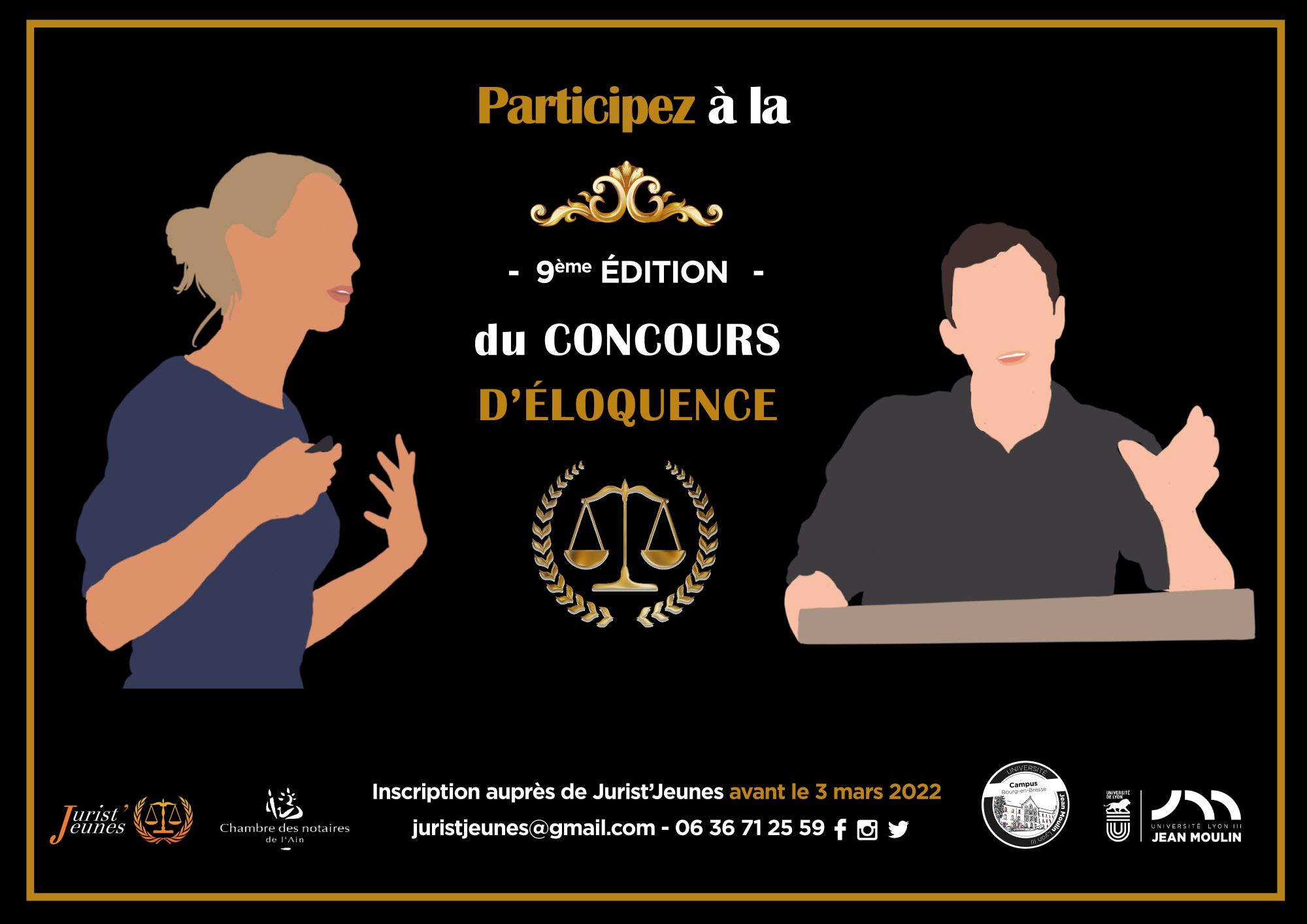 L’association étudiante Jurist’Jeunes organisera pour la 9ème année consécutive son traditionnel Concours d’Éloquence à partir du mois de mars 2022.