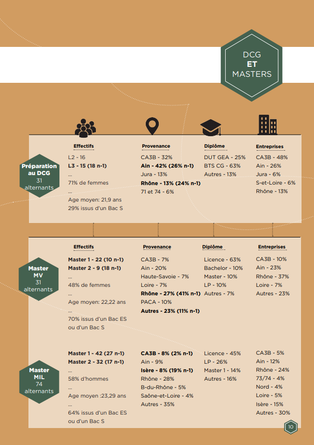 Comme chaque année les étudiants viennent à 69% de l’Ain ou de l’agglomération et 67% des entreprises sont situées dans la CA3B ou le département. Ces chiffres confortent le positionnement de ces formations qui permettent de former les jeunes de notre territoire dans nos entreprises locales.