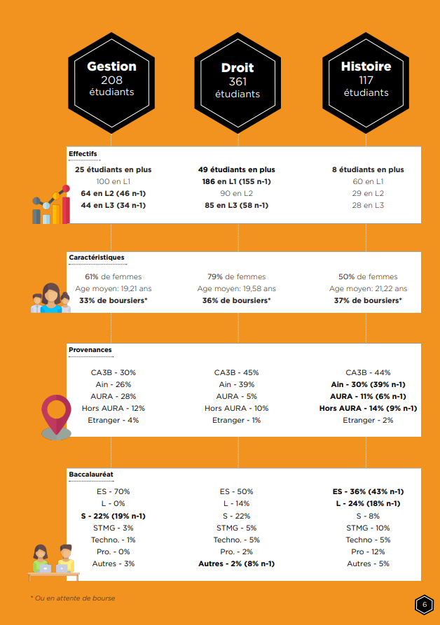 Nous constatons une hausse globale du nombre d’étudiants. 117 étudiants et alternants de plus sont venus rejoindre le Campus de Bourg de l’Université Jean Moulin Lyon 3.
